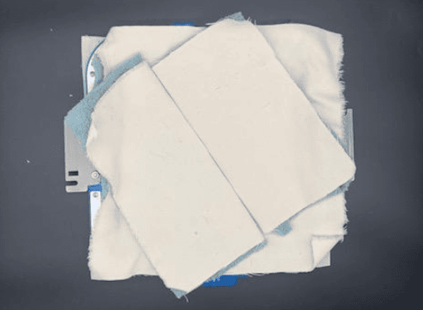 Step 7: Lightly spray with a temporary spray and place the remaining 10×10 inch towel piece on it.