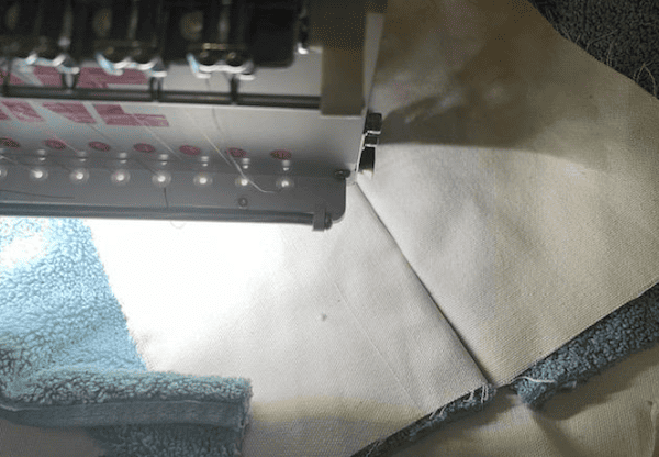 Step 9: Insert into the machine and stitch through all but the last tack down line.