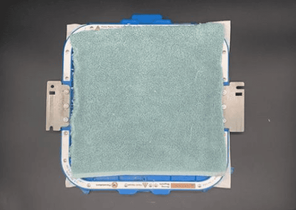 Step 1:We’ll start by hooping a piece of cutaway stabilizer to create the two sides of the back.