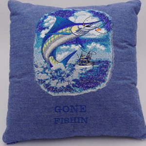Gone fishing embroidered pillow