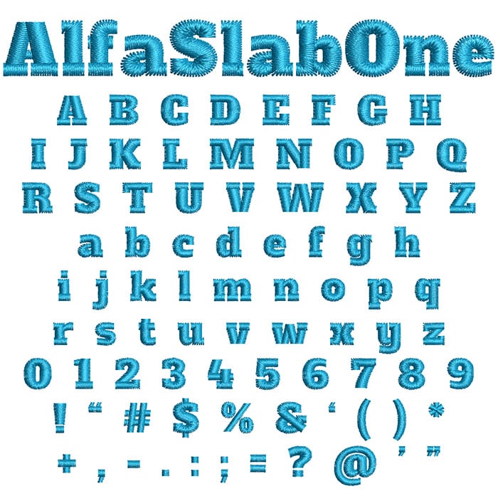 Alpha Slab One Font comes in an .ESA file format. It loads directly into your Hatch or Wilcom E series software to be used as a keyboard font. Click here to learn how to install this font.