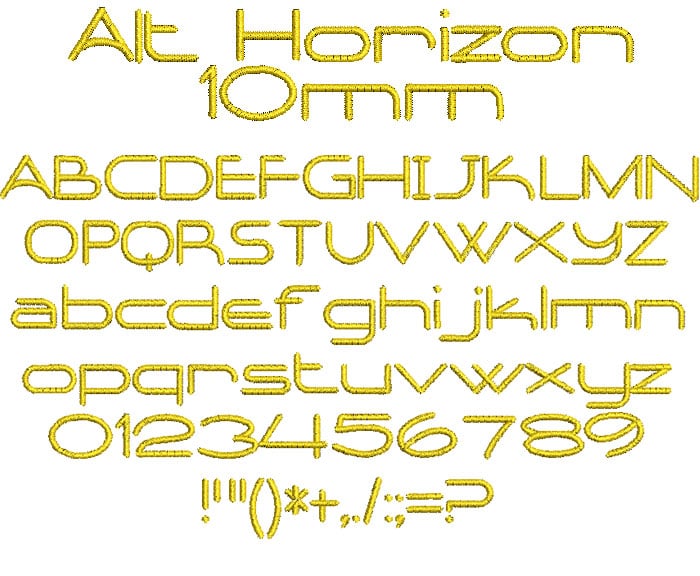 ESA Embroidery Font: Alt Horizon 10mm