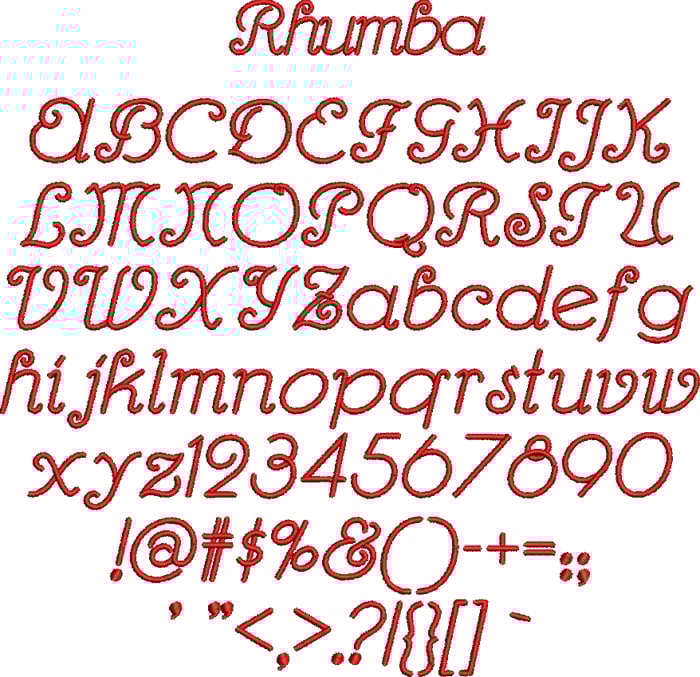 This font is available as a BX file, which can be used with Embrilliance Essentials, AlphaTricks, and Designer’s Gallery EmbroideryWorks as a keyboard font. Native BX Fonts are object-based fonts created within the Embrilliance/Stitch Artist platform and therefore will resize with much cleaner results. Click here to learn how to install BX embroidery fonts. New to embroidery fonts? Click here to view our complete guide to machine embroidery fonts.