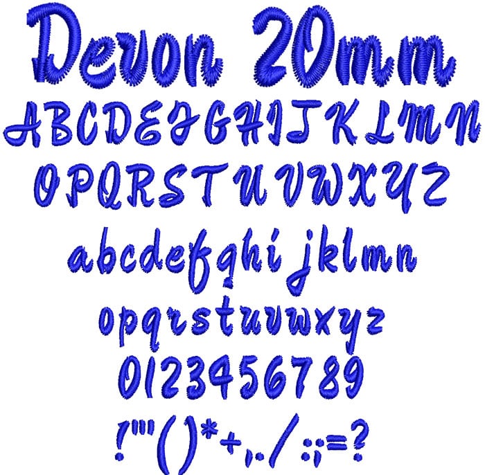 ESA Embroidery Font: Devon 20mm