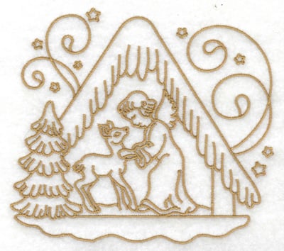 Embroidery Design: Angel with deer in manger 2 Sizes