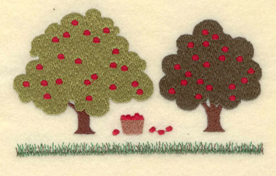 Embroidery Design: Apple Trees with Basket 2 Sizes