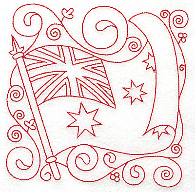 Australia, Australian, Oceania, Block, blocks, Australian Flag, flag, symbol, emblem, quilt, quilting, redwork, red, work, linework, culture, cultural, red, white, blue, tradition, traditional, design, decoration, decorative,