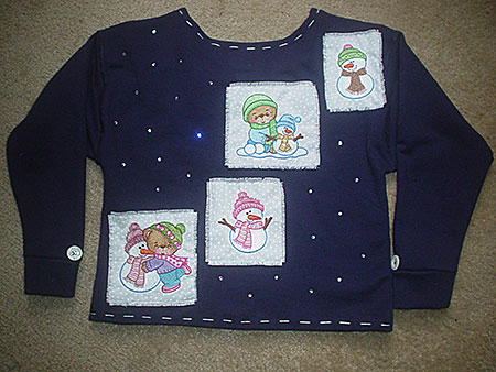 Embroidery Design: Bear hugging snowman 2 Sizes