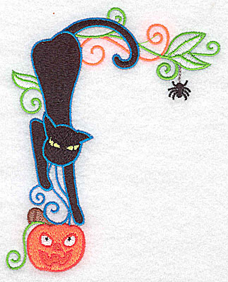 Embroidery Design: Black cat heading downward to pumpkin 3.92w X 4.98h