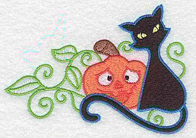 Embroidery Design: Black cat pumpkin and leaves 3.89w X 2.75h