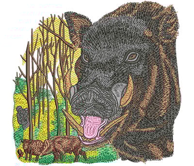 Embroidery Design: Boar Hunt 3 Sizes