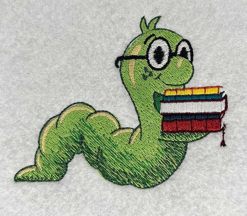 Embroidery Design: Bookworm Cartoon 3 sizes