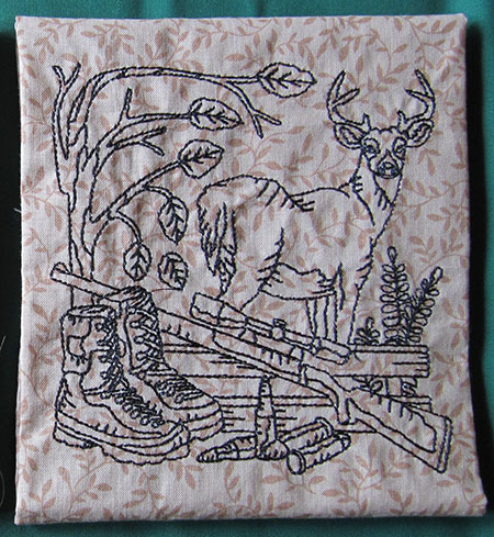 Embroidery Design: Buck rifle and fence 3 Sizes
