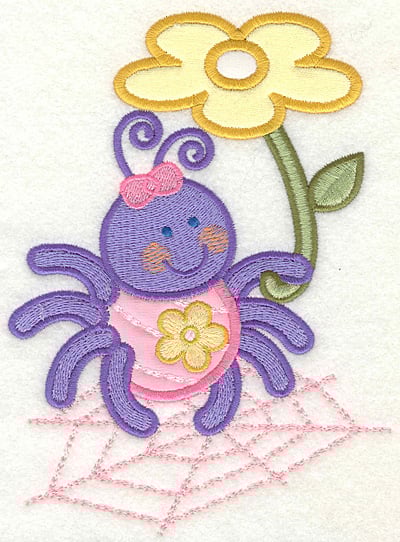 Embroidery Design: Bug with flower on web 4.93w X 6.75h