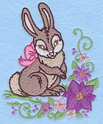 Embroidery Design: Bunny with bow and flowers 4.05w X 4.98h