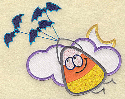Candy, corn, Halloween, moon, clouds, bats, holiday, festive, embellishment, decorative, sweets, children, cartoon, Candy Corn applique with bats, candy corn, candy corn with bats, flight, flying, fly, lunar, night, cloudy night, personified