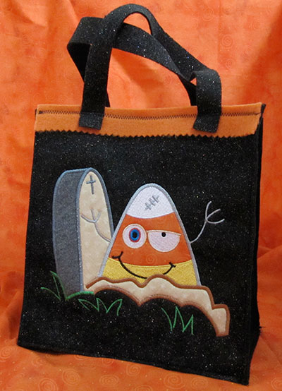 Candy Corn applique with tombstone large 9.56w X 7.38h
