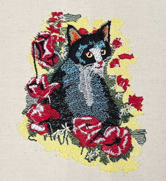 Embroidery Design: Cat And Flowers 3 Sizes