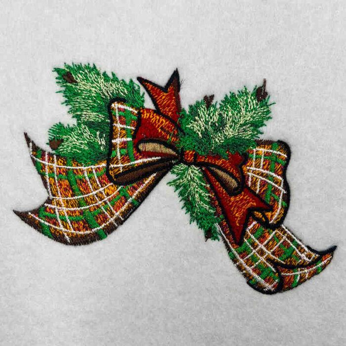 Embroidery Design: Christmas Bow with Spruce – 4.99w X 3.53