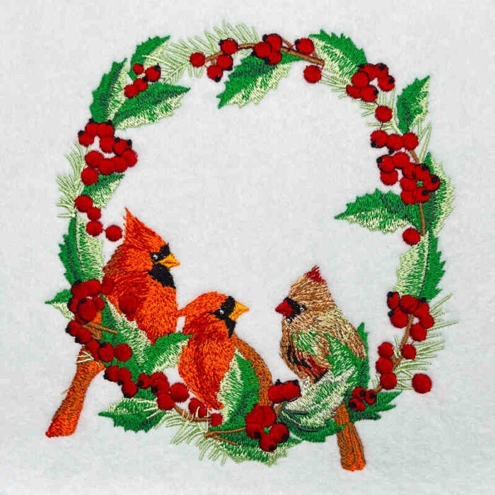 Embroidery Design: Christmas Cardinal Wreath – 6.28w X 6.83h
