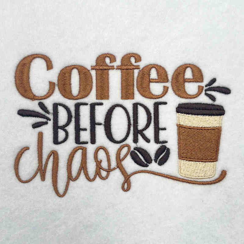 Embroidery Design: Coffee Before Chaos – 5.01w x 3.31h