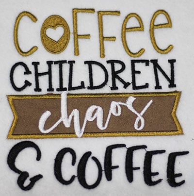 Embroidery Design: Coffee Children Chaos Applique 2 Sizes