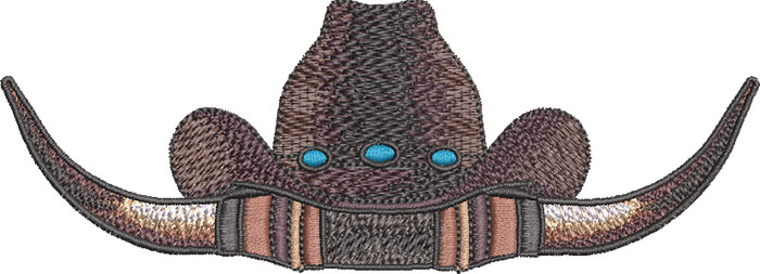Embroidery Design: Cowboy Hat and Horns3 sizes