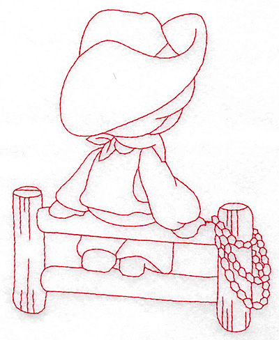 Little Cowboy Redwork, Cowboy, wild, west, wild west, culture, cultural, design, decorative, decoration, western, fence, lasso, rope, hat, redwork, quilt, cuite, Cowboy sitting on fence, fencing, ornament, ornamental,