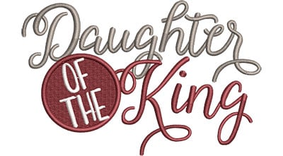 Embroidery Design: Daughter Of The King Cursive 3 Sizes