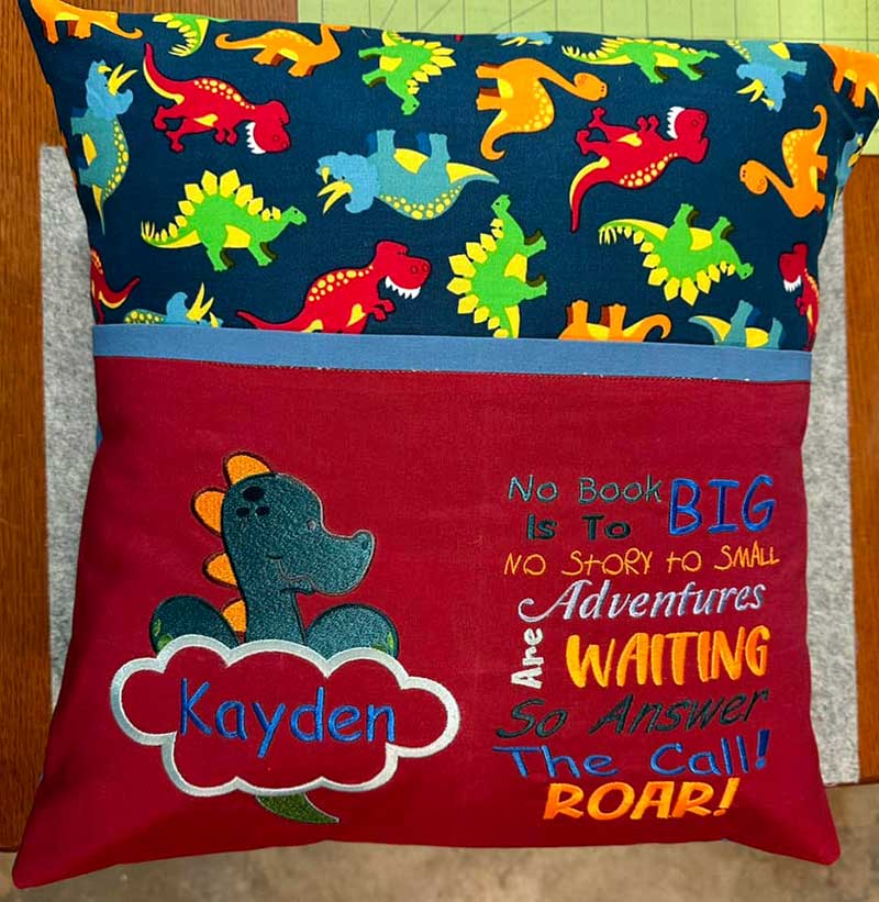 Dinosaur with cloud applique large 3.90w X 4.98h