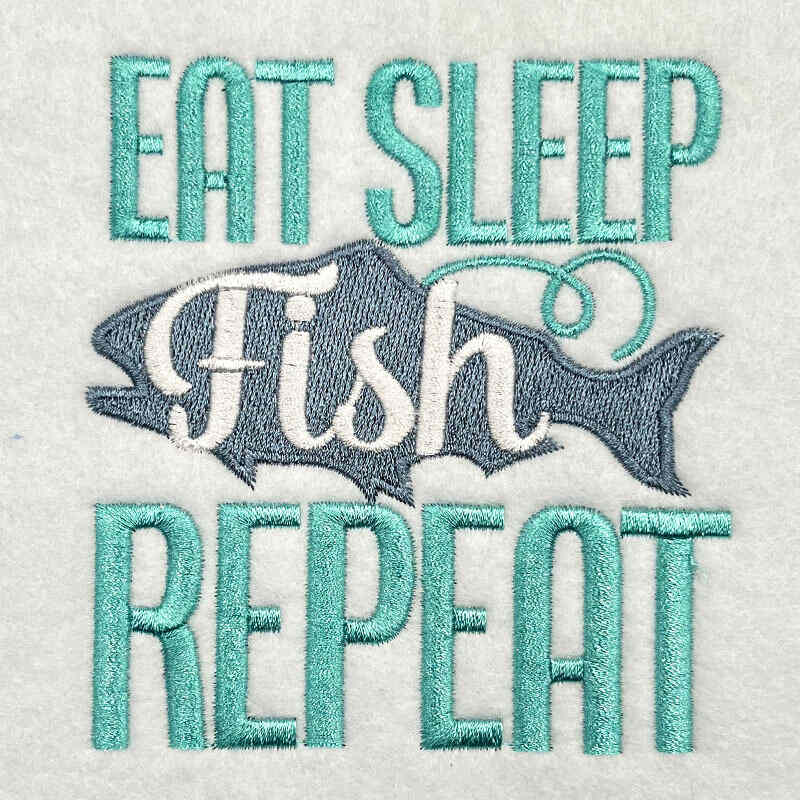 Embroidery Design: Eat Sleep Fish Repeat – 4.13w x 4.51h