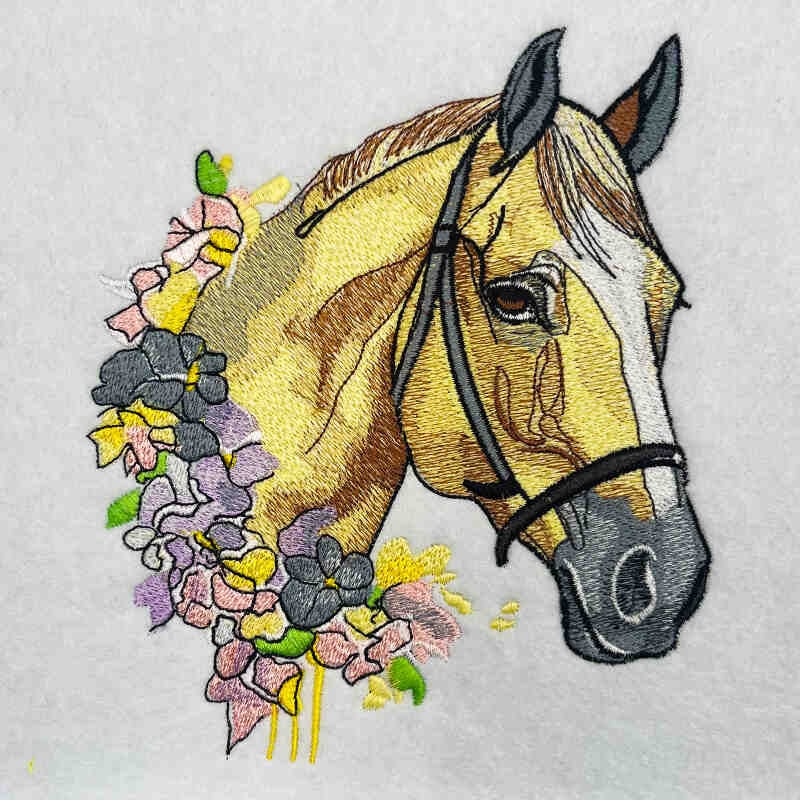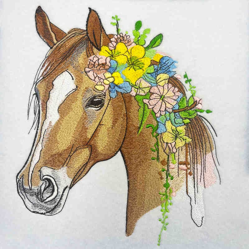 Embroidery Design: EL Horse and Flowers 2 – 3 sizes