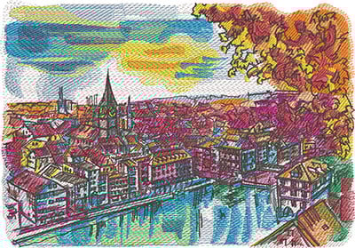 See The World In Stitches Zurich, realistic, scene, scenery, houses, landscape
