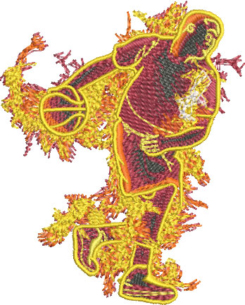 Embroidery Design: Fire Basketball Player 3 Sizes