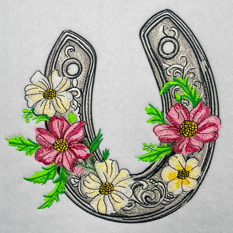 Embroidery Design: Floral Horseshoe 1 – 2 sizes