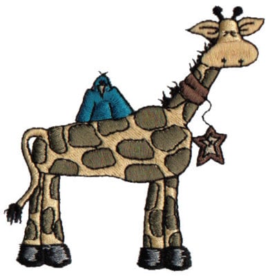 Embroidery Design: Giraffe & Blue Bird 3.00″ x 3.19″