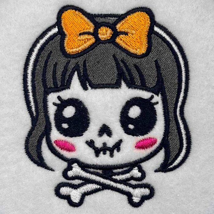 Girl Skull Orange Bow Applique – 2.58w x 3.04h