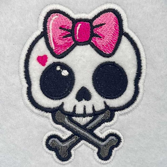 Girl Skull Pink Bow Applique – 2.45w x 3.04h