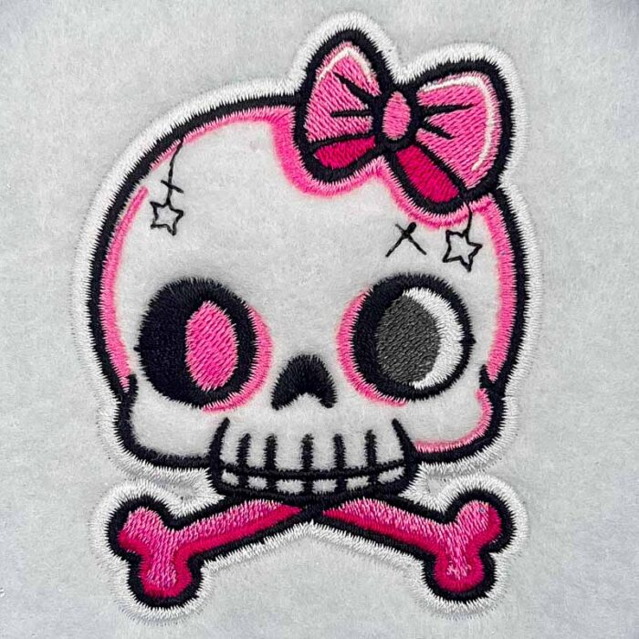 Girl Skull Pink Bow Applique – 2.46w x 3.13h