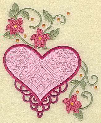 Embroidery Design: Heart applique and flowers J 2 sizes
