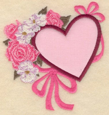 Embroidery Design: Heart applique with flowers 2 Sizes