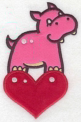 Embroidery Design: Hippo on heart appliques 3.89w X 6.08h