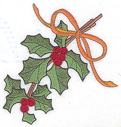 Embroidery Design: Holly berries and ribbon 2 Sizes