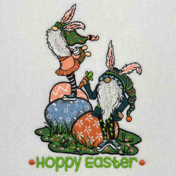 Embroidery Design: Hoppy Easter Gnomes – 4.84w x 7.00h