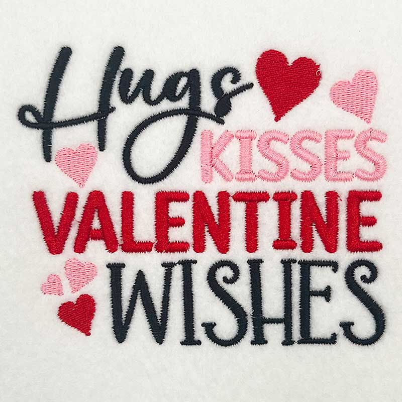 Embroidery Design: Hugs Kisses Valentine Wishes