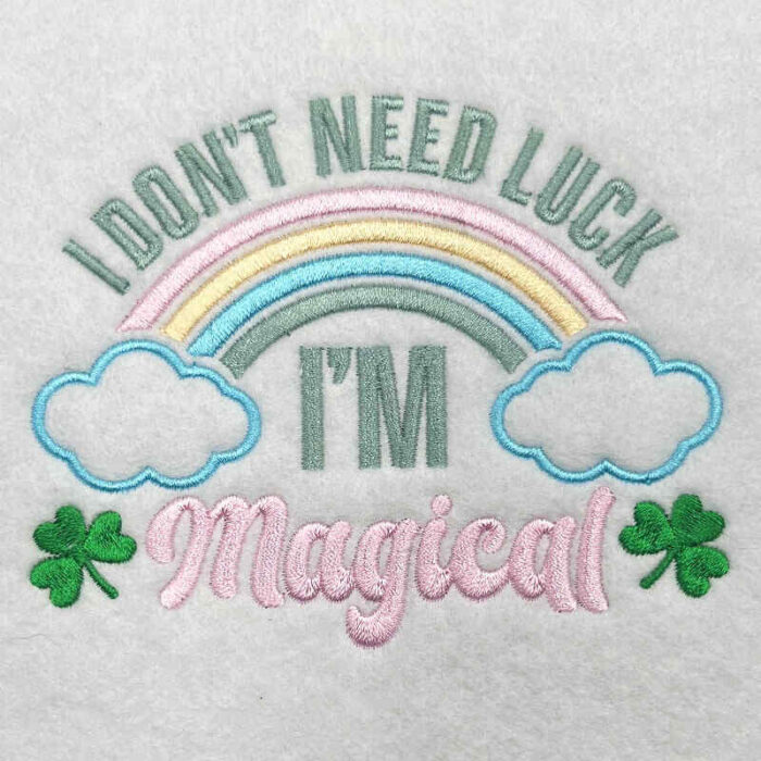 Embroidery Design: I Don’t Need Luck – 4.56w x 3.65h