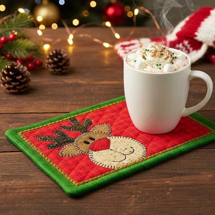 Reindeer Mug Rug – 6.69w x 4.44h