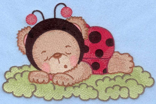 Embroidery Design: Ladybug bear sleeping on grass 2 Sizes