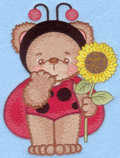 Ladybug bear with single sunflower large 4.48w X 5.86h