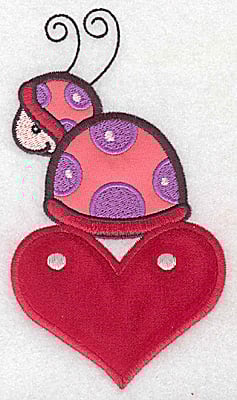 Embroidery Design: Ladybug on heart appliques 3.37w X 5.96h